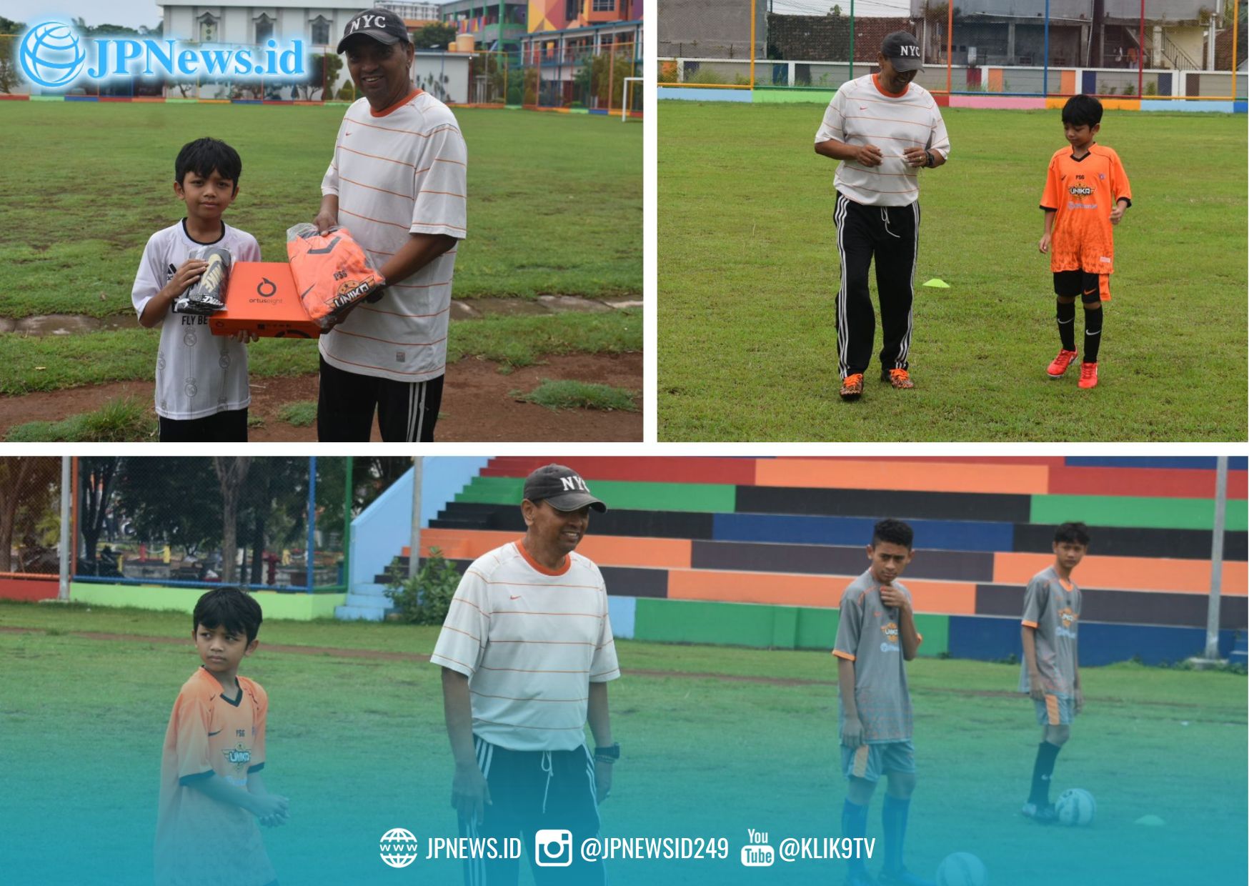 Siswa kelas 4 SD Al Hikmah Gayungsari tersebut, disambut pelatih Abdul Azis dengan serah-terima perlengkapan sepak bola berupa kostum tim, sepatu, deker…