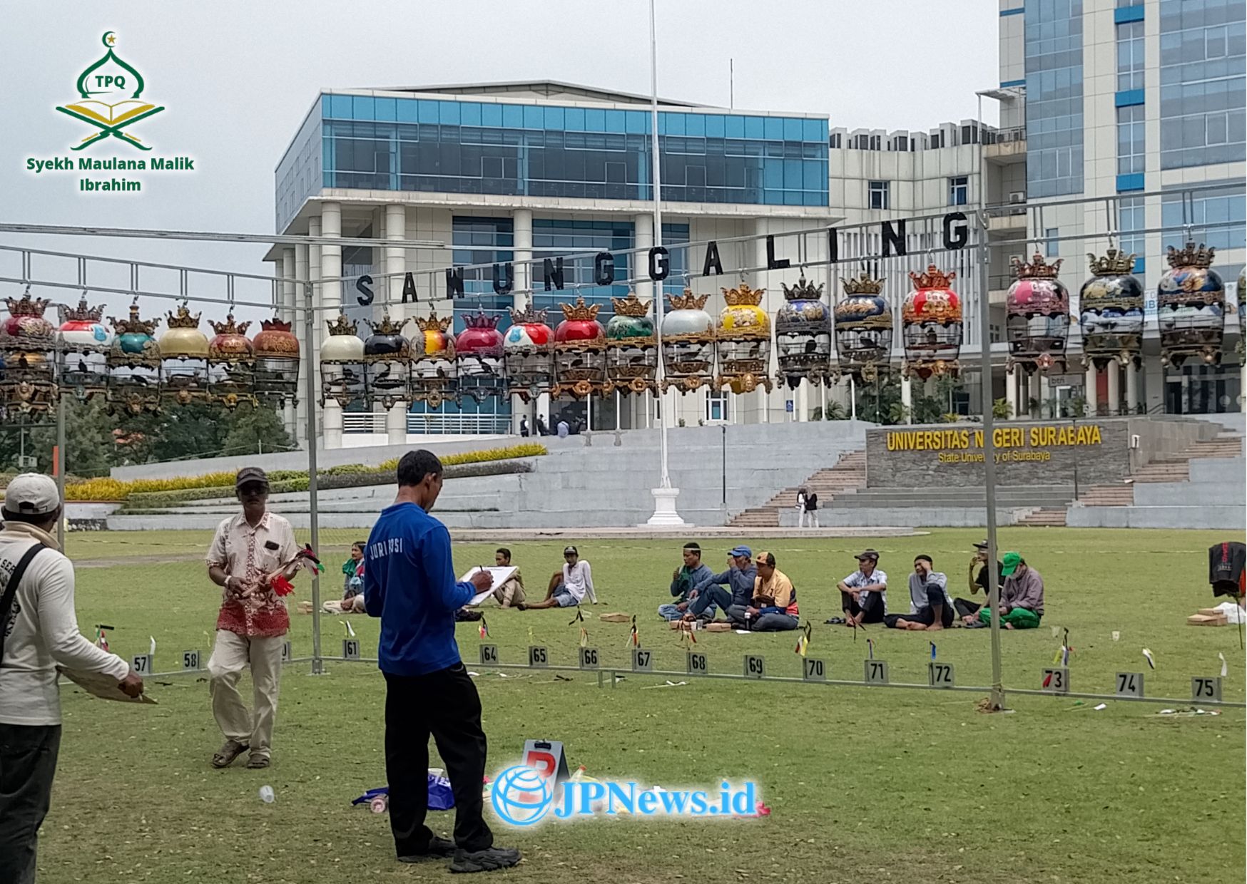 SURABAYA (JP) – Sebanyak 96 perkutut meramaikan kontes piyik hanging memperebutkan trofi Unesa Cup I 2025 di halaman Gedung Rektorat Kampus